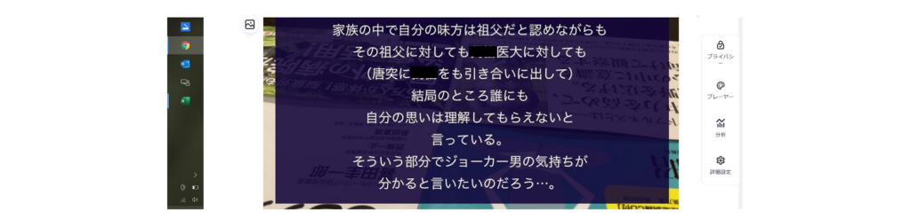 たしかに先生のように傾聴に時間をかければ、患者が隠し持っている様々な思いを知ることはできるのでしょう。ですが現実的に一人の患者にここまでの時間は費やせませんし、字幕の中で「こうしたやり方を推奨しない旨」書かれてありましたが、言われるまでもなく、やりたくてもやれないというのが正直な感想です。