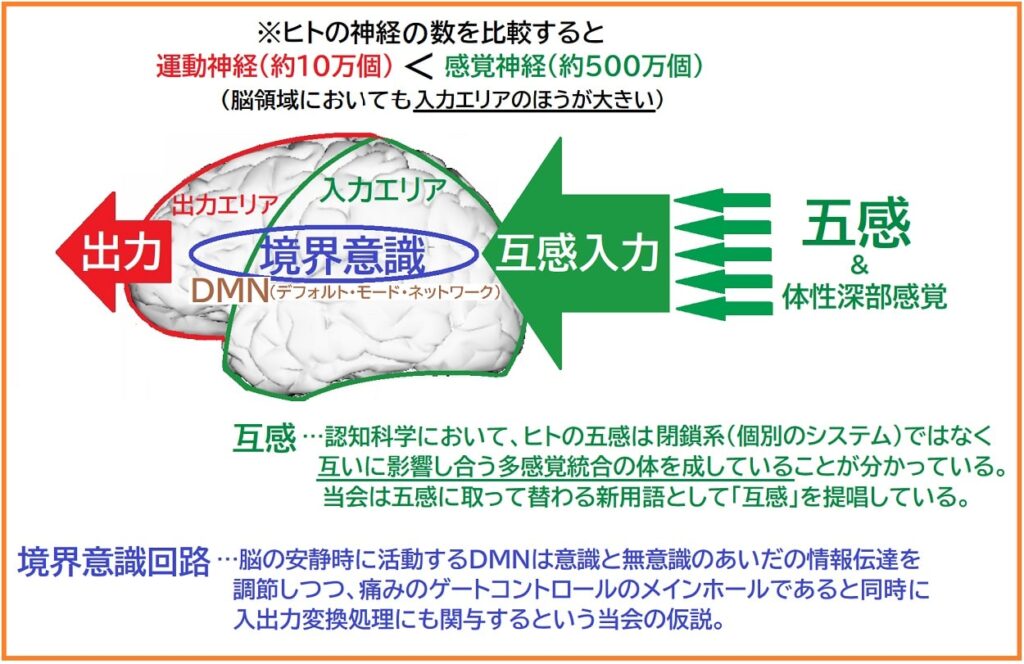 また消費エネルギーの観点からも、出力(意識的活動)最低レベルの状態すなわち安静時に活動するDMNのエネルギー量が意識活動の数十倍(20倍という報告がある)に及ぶことからも、基本的に出力系より入力系に多くのコストを費やしていることが推断されます。